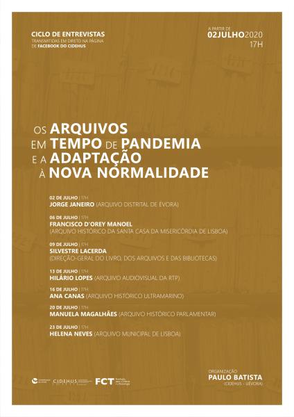 A partir desta nova experiência que vivemos, o CIDEHUS, sob a coodenação do investigador Paulo Batista tem desenvolvido ao longo do mês de Julho/2020 um conjunto de entrevistas que pretende ser um espaço de partilha de experiências, com o objetivo de compreender de que modo é que neste período os arquivos foram capazes de se reinventar e dar uma resposta eficaz aos problemas e oportunidades surgidas.